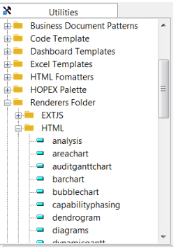 Renderers are modelled in HOPEX and called through an object identifier.