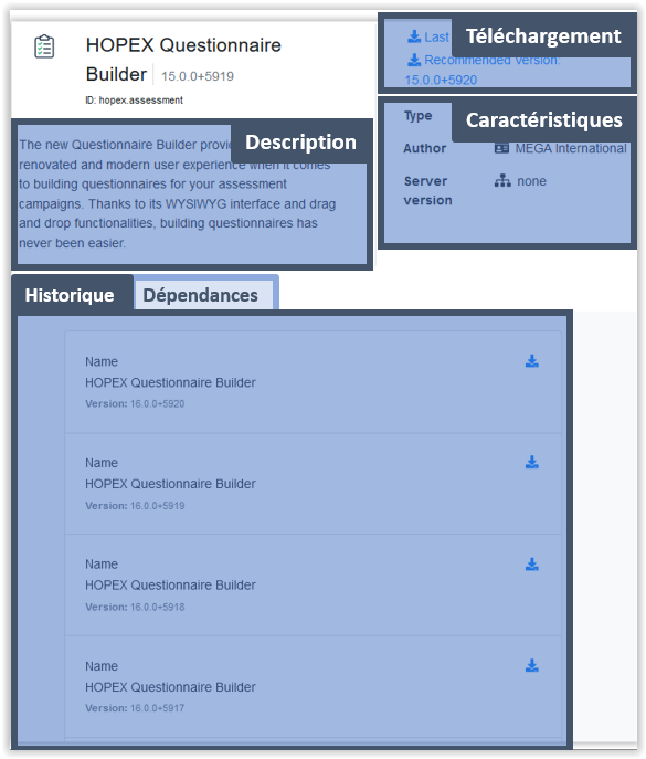 • des accès directs à son téléchargement (dernière version et version recommandée)