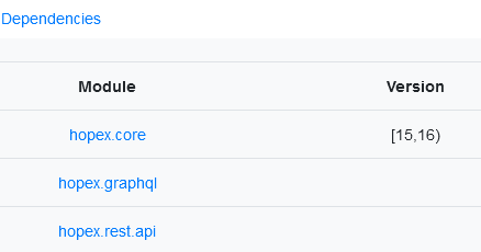 Quand nécessaire, la version requise du module dépendant est indiquée.