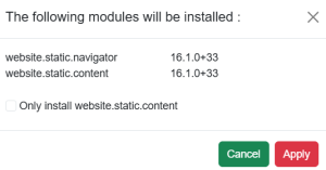Ex. : l'installation du module "website.static.content" nécessite l'installation du module "website.static.navigator".