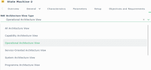 If the property is set using the Operational Architecture View or the All Views value, the state machine is considered an operational one. Therefore, when the user creates a new state machine in the navigation tree, the property is set to Operational Architecture Views and states described in the state machine must relate to an operational state machine.