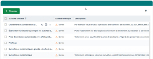 L'Échelle de risque des activités sensibles fournies par défaut est « Élevée ».