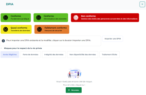 1. Dans la section Risques pour le respect de la vie privée de la DPIA, cliquez Nouveau pour créer un risque dans l'un des onglets correspondants aux différents types de risque: