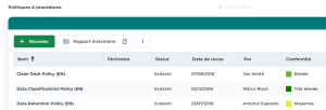 A partir de la liste de documents de politique interne vous pouvez spécifier des informations concernant leur évaluation :