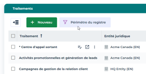 2. En haut de la liste des traitements, cliquez sur bouton Périmètre du registre.