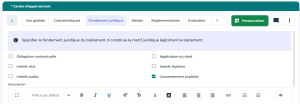 L'équipe Privacy peut évaluer par la suite le Fondement juridique à partir des options sélectionnées précédemment par le propriétaire de traitement.