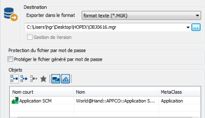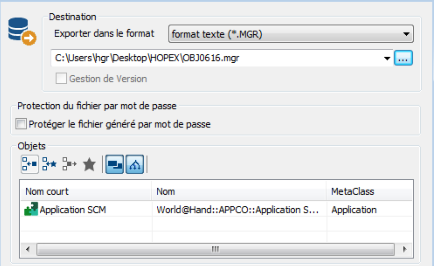 Vous pouvez exporter un objet à partir de votre bureau Hopex.