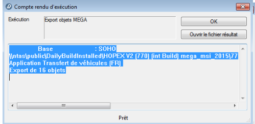 2. Dans la fenêtre de Compte rendu d'exécution de l'export, cliquez sur Ouvrir le fichier résultat.