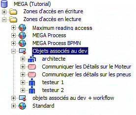 Les objets sont reliés à la zone d'accès en lecture pour objets et apparaissent dans l'arborescence.