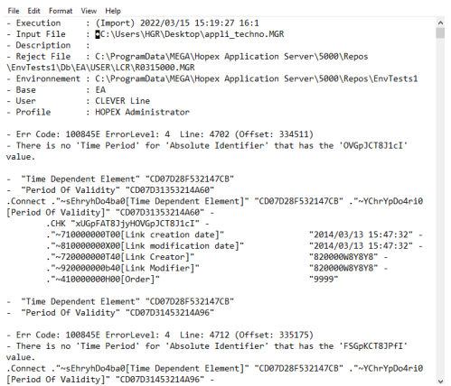 Le fichier de rapport s'affiche et détaille tous les rejets.
