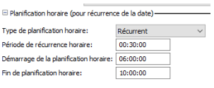 4. Définissez la récurrence (période, démarrage et fin de la planification horaire) :