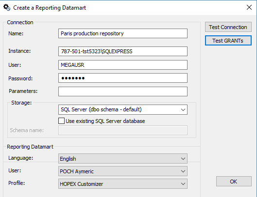 Once the Reporting Datamart is created you can initialize the structure with the HOPEX repository metamodel.
