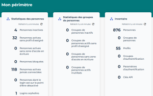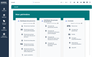 Personnes donne accès aux personnes dans la zone d'exploration, ainsi qu'aux personnes classées par groupe, par profil, par zone d'accès en écriture et par zone d'accès en lecture.