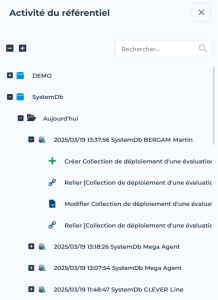 Toutes les publications (espaces de travail privés et publics) effectuées sur le référentiel courant et le référentiel système sont classées dans des dossiers par jour, semaine et mois.