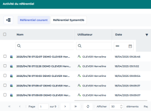 • d'une liste, que vous pouvez filtrer par utilisateur et/ou date