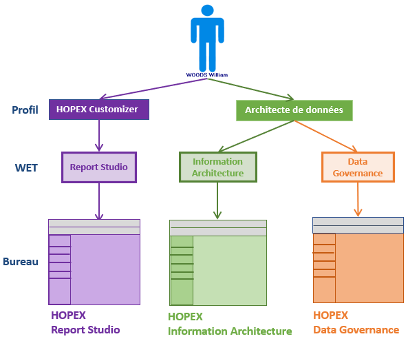 Le profil détermine le bureau Hopex (un ou plusieurs) auquel l'utilisateur peut accéder.