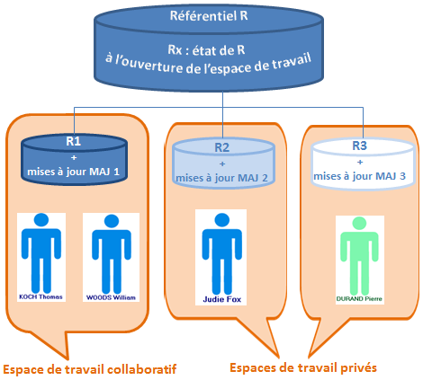 L'utilisateur peut aussi mettre à jour son espace de travail privé avec les mises à jour des autres utilisateurs. Pour cela il rafraîchit son espace de travail privé.