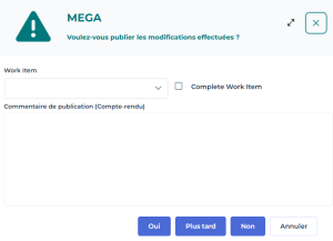 2. (optionnel) Dans le cadre Commentaire de publication (Compte-rendu), saisissez un commentaire pour vous souvenir des modifications effectuées dans votre espace de travail privé.
