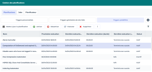 Dans la fenêtre de Gestion des Planifications la page Planifications présente les Triggers (déclencheurs) :