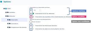 L'icône, affichée en regard de l'option, indique l'héritage ou non du niveau supérieur :