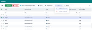3. Dans la barre de menus de la liste, cliquez sur Licences > Attribuer les licences.