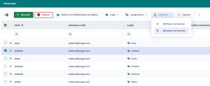 3. Dans la barre de menus de la liste, cliquez sur Licences > Révoquer les licences.