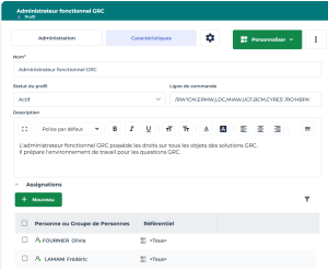Les caractéristiques complètes d'un profil sont seulement accessibles dans un but de personnalisation du profil (bureau Hopex Studio, profil Hopex Customizer).