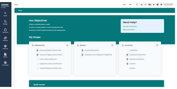 Quick Access contains shortcuts facilitating your work in HOPEX UAF.