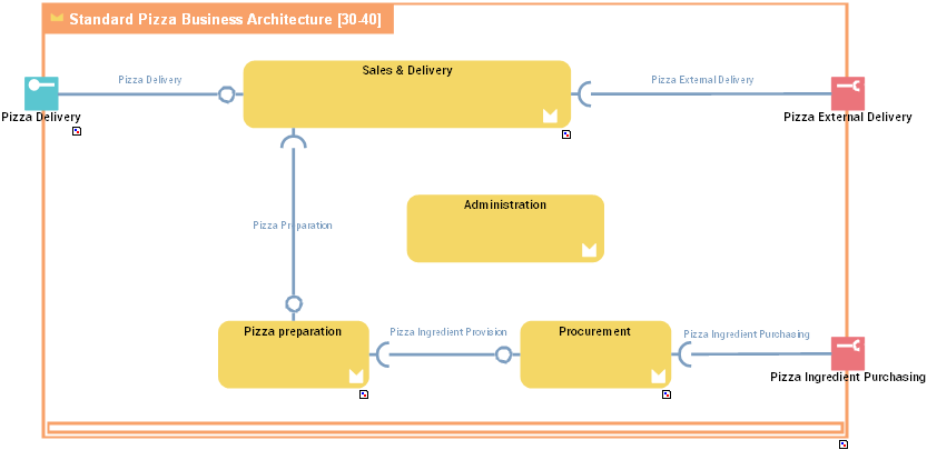 A Operational Domain diagram describes the service interactions between the main internal components of the architecture described. It thus describes: