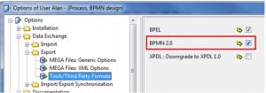 The BPMN export feature is available with MEGA Process BPMN and MEGA System BluePrint, and supports BPMN version 2.0.
