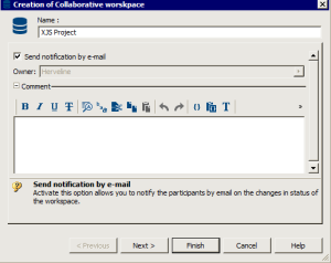 3. (Optional) Select Send notification by e-mail to warn each collaborative workspace participant (including yourself) of certain modifications in this collaborative workspace (change of collaborative workspace state, addition/deletion of participants).