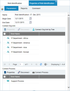 E.g.: with the risk identification report you can presents distribution of risks according to several criteria: by process, by risk type, by entity and by objective.