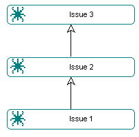 "Issue 2" has "Issue 1" as its cause and "Issue 3" as its effect.