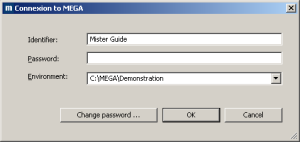To simplify your first steps with MEGA, this guide is based on examples available in the "MEGA (Tutorial)" repository of the "Demonstration" environment. The "Mister Guide" user has been installed to guide you in your discovery of MEGA.