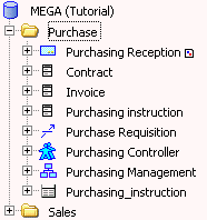 • The folder representing the main object types of the repository (for example, databases and packages, organizational processes and org-units).