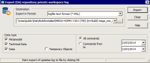 1. From the MEGA menu bar, select Tools > Manage > Export Updates Log.