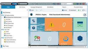 In the example below, the risk functional administrator for the HOPEX ERM Solution has access to three desktops in which he/she can navigate: