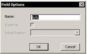In order to be referenced at programming, each shape object must first be identified by a name. This naming can be via the "Field Options" command in the pop-up menu of each object. The name should be prefixed and suffixed by "&".