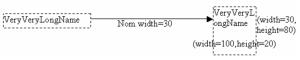 • Fix the final width of the shape as a function of the width of fixed size objects, calculated fields and the width required for the shape (shape width before code application, see example below). (NB1)