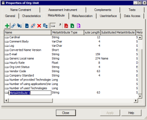 1. In the Properties window of the MetaAttribute, select the Characteristics tab, then the Advanced subtab.
