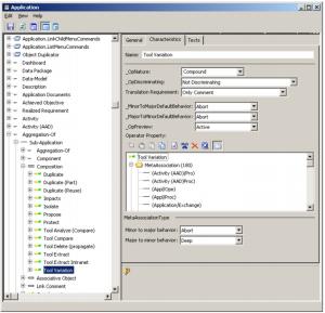 The following figure shows this operator set for the Composition metaassociationtype. In that case, all associations linked to this type behaves the way defined for the operator else the operator is directly set in the association.