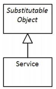 In the following example, the IT Service concept is declared as substitutable. Then, all services inherited in an application can be removed or replaced.