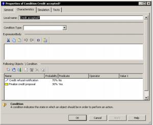 Conditions enable conditioning of the appearance of groups or of elements. The condition relates to the properties dialog box object occurrence.