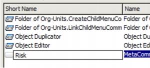 6. In the Short Name field, enter the command name (example: « Risk»).