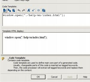 15. In the Behavior frame, click the Web Client Code field arrow and select the _Code Template required (example: "Open Help Page").