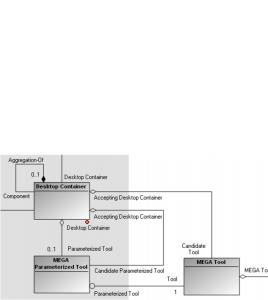 To define where the MEGA Tool or the MEGA Parameterized Tool will open when you request its opening (from the pop-up menu of an object for example) you must define this MEGA Tool or MEGA Parameterized Tool as candidate for a Container.