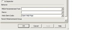 5. In the MetaCommand Group field (example: "Main Toolbar MA A"), click the arrow and select Properties of the MetaCommand Group (example: "Main Toolbar MA A").
