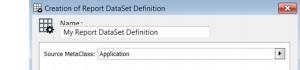 A Report DataSet Definition is MetaClass specific. The Report DataSet Definition creation consists in connecting a source MetaClass (concrete or abstract) to the Report DataSet Definition.