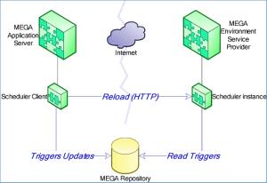 The Scheduler component instantiated into the Environment process loads and manage the Triggers into its memory.