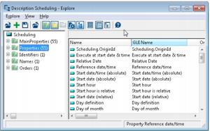 The properties of the Scheduling MegaObject available via the Scheduler client API can be listed in the MEGA Explorer as following: